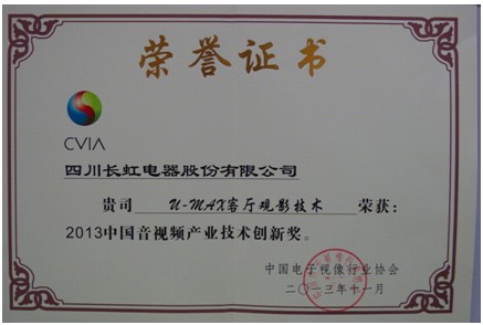 (长虹荣获“2013中国音视频产业技术创新奖”)