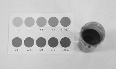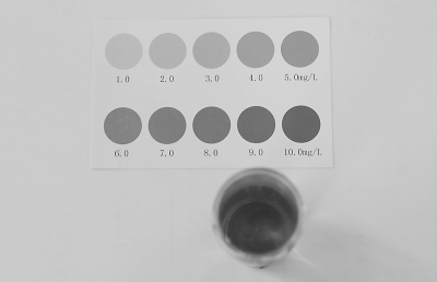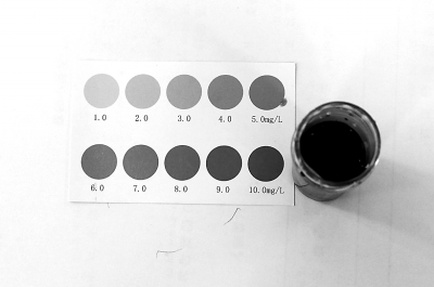 王喆说,含氧量测定可以通过快速检测试剂的显色表来观察,水中溶解氧的含量越高,加入试剂的水样颜色越深。