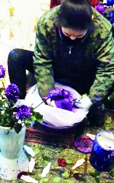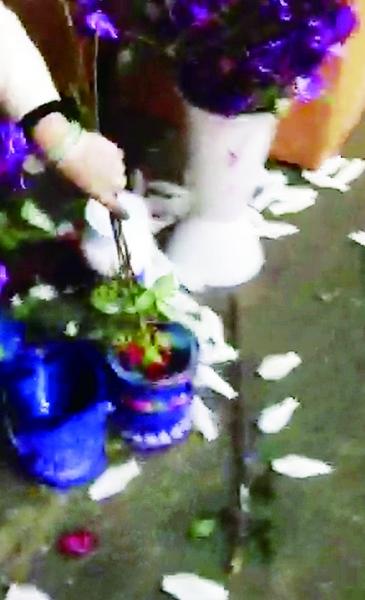 看到记者拍照,商户表示不满,一个劲地说,“别拍了,别拍了。”另外一家商户也正要制作亮粉玫瑰,记者上前询问时,这位商户也赶紧收拾起东西。