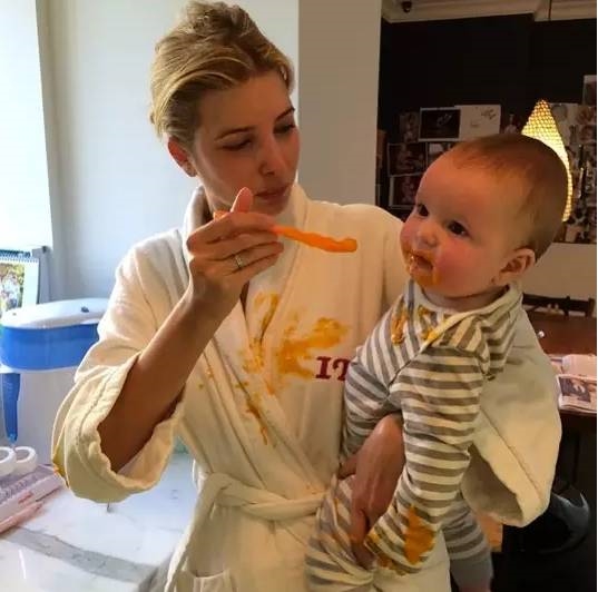 有了孩子以后,伊万卡也成了晒娃狂魔,instagram上经常晒出一家四口合照。
