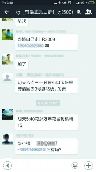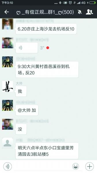 在群聊的记录中,记者看到出售的大多数行程是乘客预约的,比如第二天早上从某地前往机场。一个行程发布出来,不出几秒就有人“认购”。