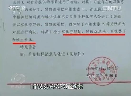 “狮马龙血脉康胶囊”声称是中成药,含有麝香、红花等许多名贵中药。经药检所检测,胶囊里除了含有面粉,还含有西药成分醋酸泼尼松和双氯芬酸钠。醋酸泼尼松是激素,有抗炎、抗过敏、抗风湿的作用;双氯芬酸钠在临床上一般用于中轻度的镇痛止痛。醋酸泼尼松长期服用,会有消化道溃疡,糖尿病,骨质疏松等副作用;双氯芬酸钠会引发胃炎、胃溃疡、恶心、呕吐等。