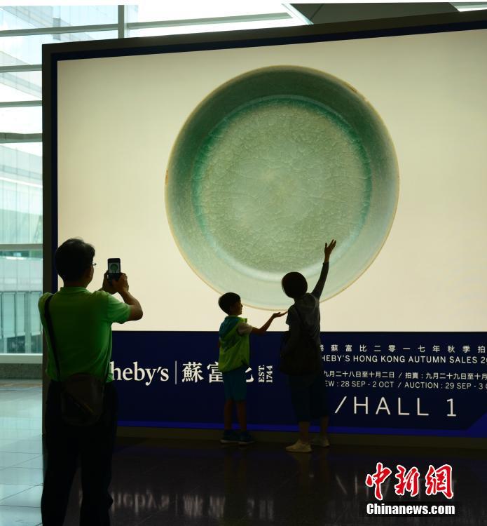 首页>要闻>民生消费 北宋釉洗2亿9千万港元拍卖 刷新中国瓷器世界纪录 中国新闻网2017-10-09 15:41 10月3日,香港苏富比拍卖进入第五天,一位匿名买家以2亿9430万港元投得“北宋汝窑天青釉洗”。图为拍卖会场外“北宋汝窑天青釉洗”宣传栏。 中新社记者 徐冬冬 摄