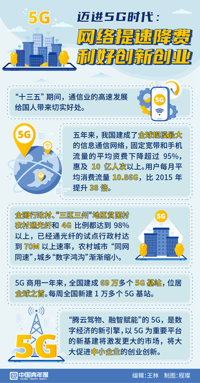 网速快了,信号好了,话费便宜了……“十三五”期间,由政府推动的“提速降费”行动给百姓带来了切实好处。5年来,我国建成了全球规模最大的信息通信网络,固定宽带和手机流量的平均资费下降超过95%。