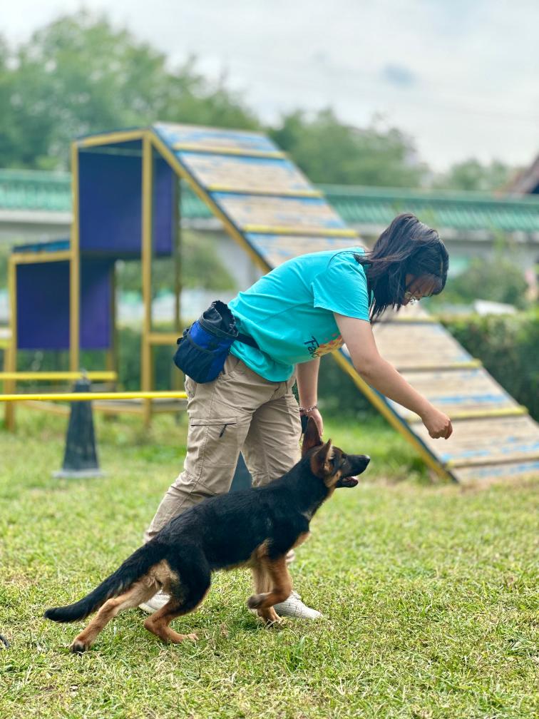 9月26日,在宠物连锁品牌“圣宠”北京总部基地,宠物驯导师训练一只宠物犬。新华社记者 崔恩慧 摄