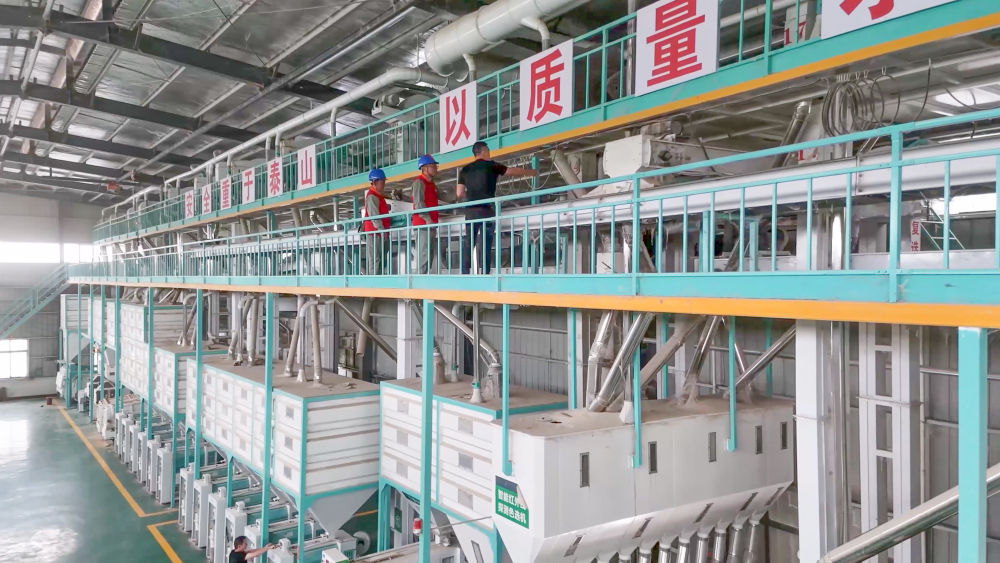 生产高峰期,电力部门上门保障军盾米业粮食生产。新华社发(李俊蕾摄)