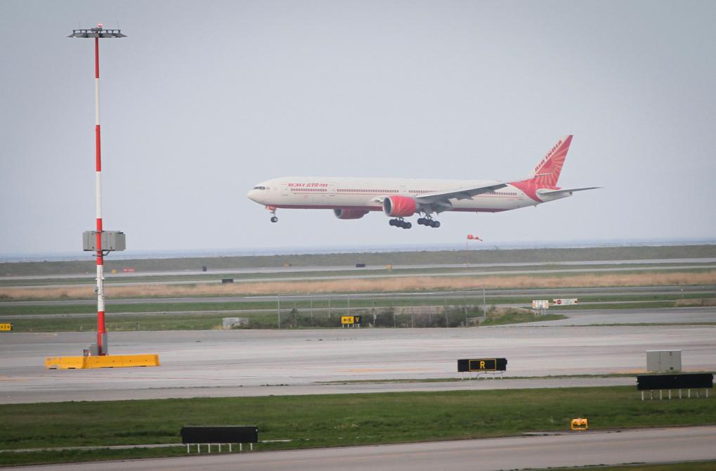 2021年4月23日,印度航空的航班降落在加拿大温哥华国际机场。新华社发(梁森摄)