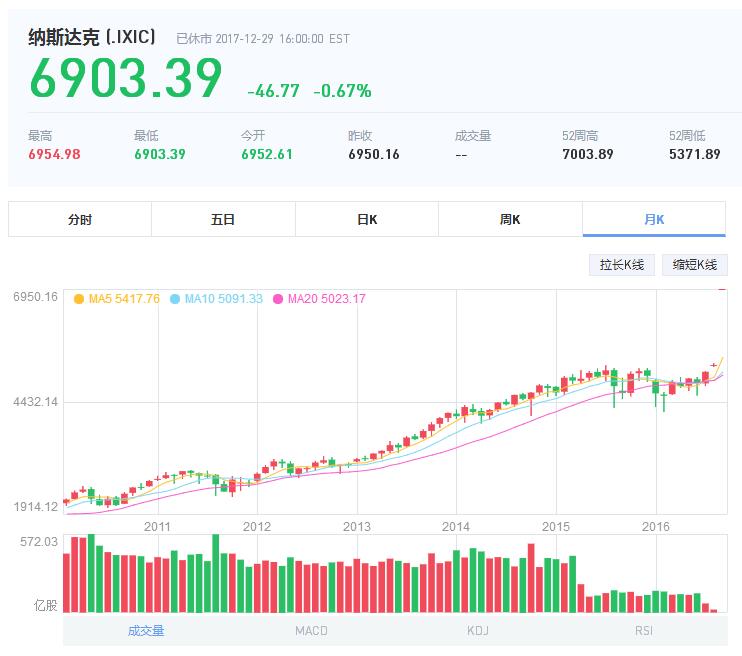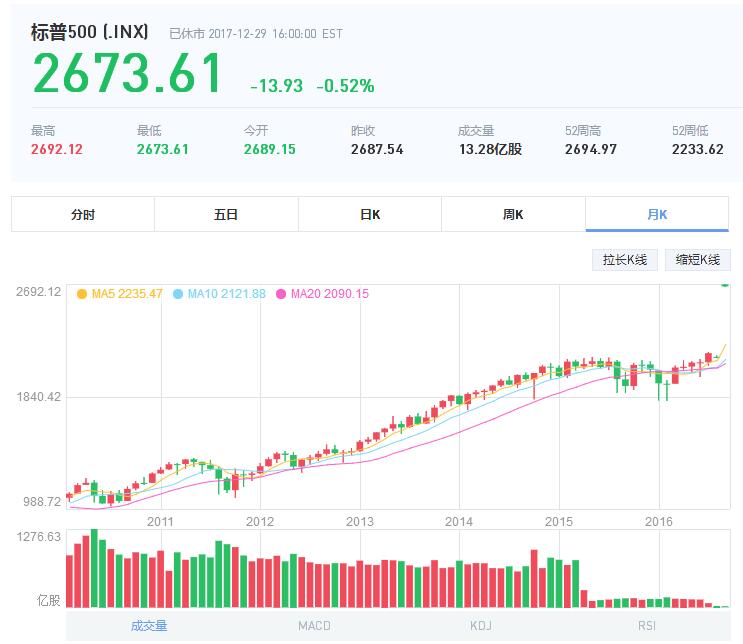 以科技股著称的纳斯达克指数在2017年全年累计上涨逾27%,标普500指数中信息技术成分股2017年累计暴涨37%,成为标普道琼斯指数追踪的11个行业指数中涨幅最大的。值得一提是,道指2017年年初时不到20000点,但该指数2017年却创下了其于1896年创建以来的一个纪录——暴涨1000点用时最短。