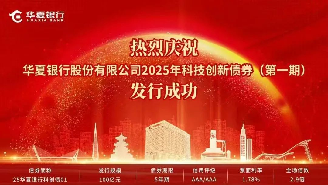 华夏银行发行100亿元5年期商业银行科技创新债券