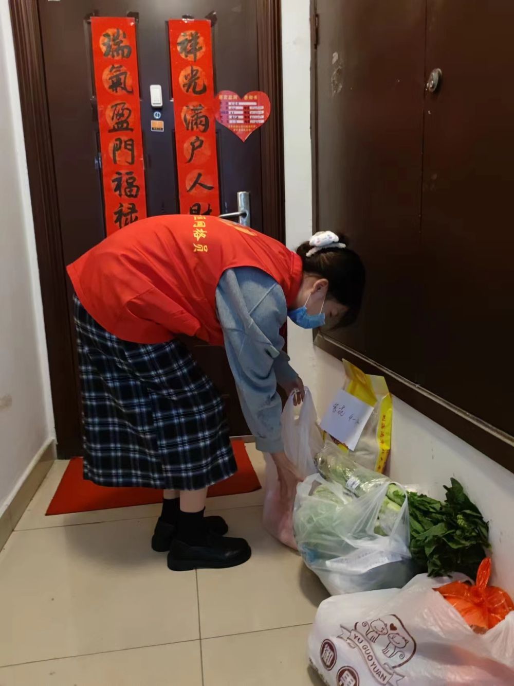 2022年3月,奚敏婷为居家隔离居民送菜。图片由受访者提供