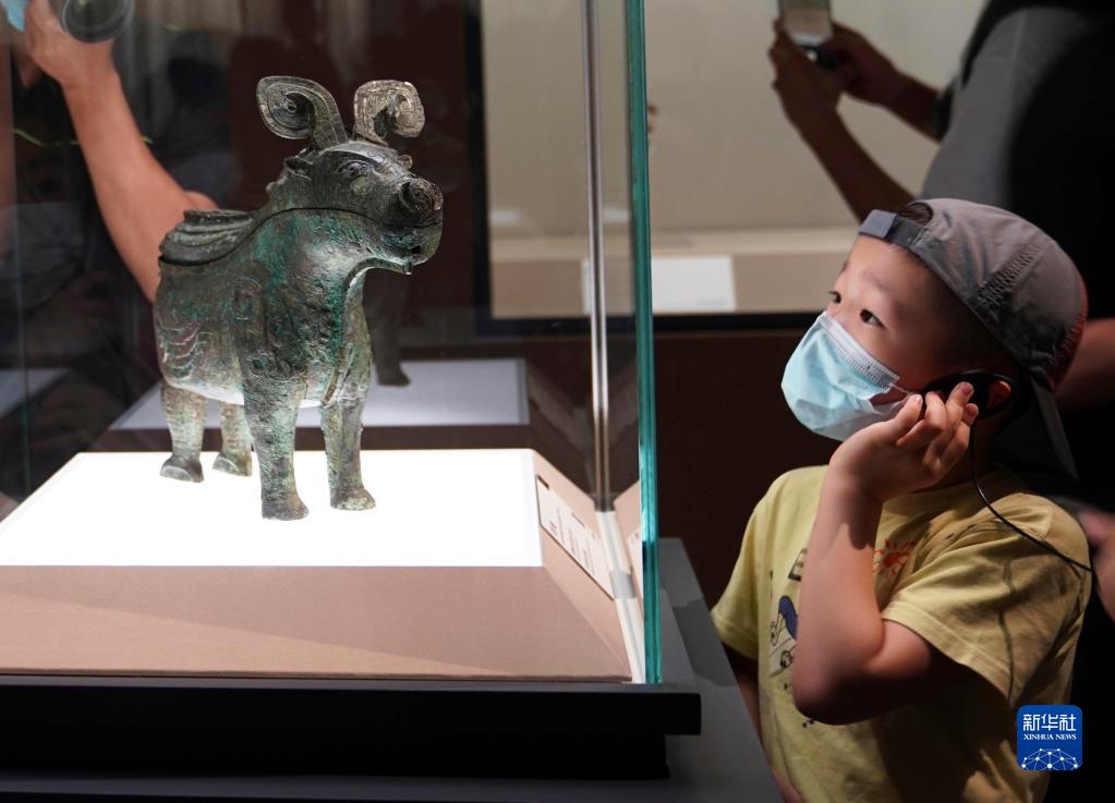 2022年7月30日,小观众在上海博物馆举行的“宅兹中国——河南夏商周三代文明展”上参观。新华社记者 任珑 摄