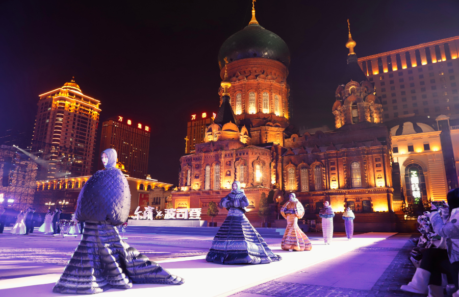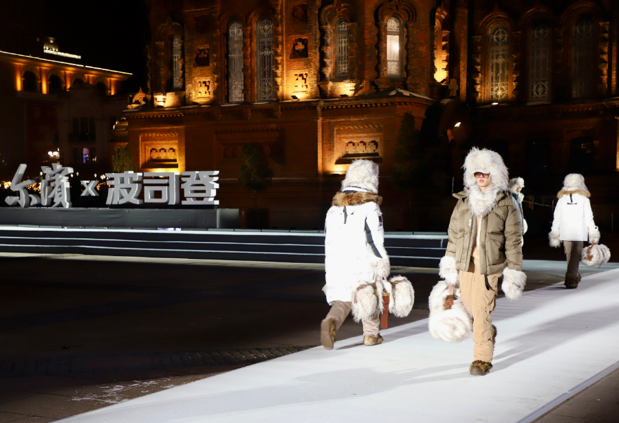 在索非亚广场举办的致敬冰雪·尔滨×波司登战略成果发布活动。新华社记者 徐凯鑫 摄