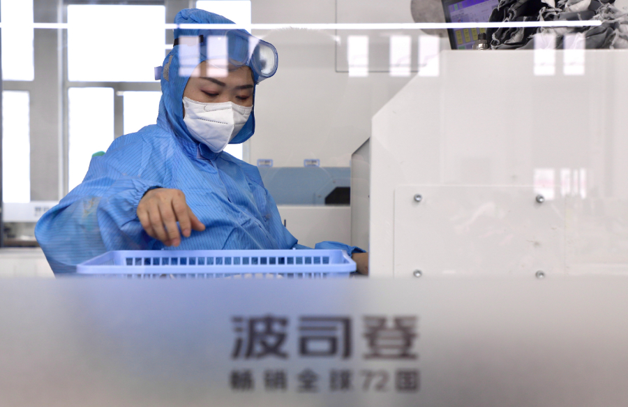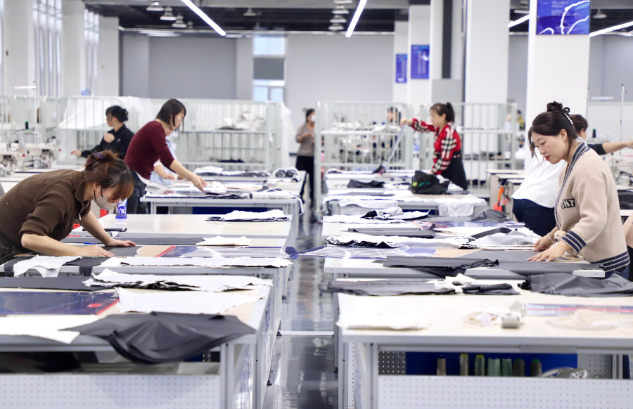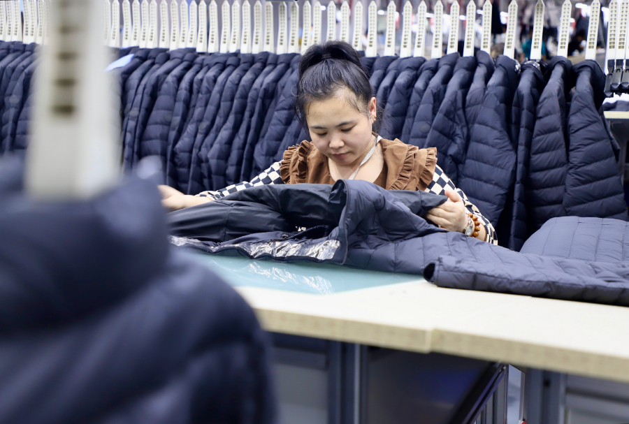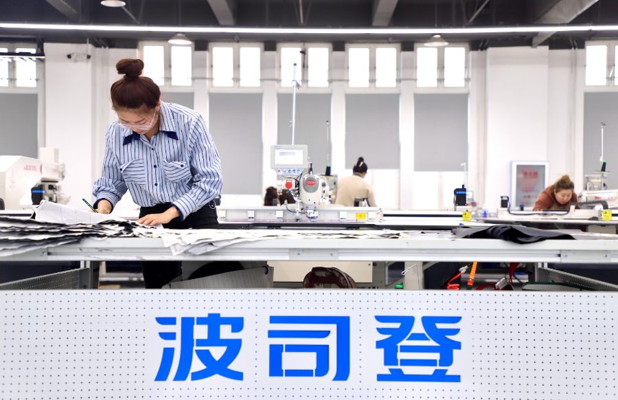 工人在波司登(哈尔滨)智能制造生产基地生产羽绒服。新华社记者 徐凯鑫 摄