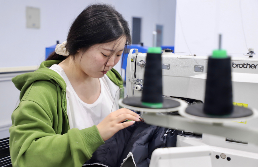 “00后”钟佳慧从哈尔滨一所技校毕业后,曾在北京打工,听说波司登在家乡建厂,成功应聘上岗。“家门口有就业机会,上下班有免费班车,还提供宿舍,一个月有几千元收入,很不错。”