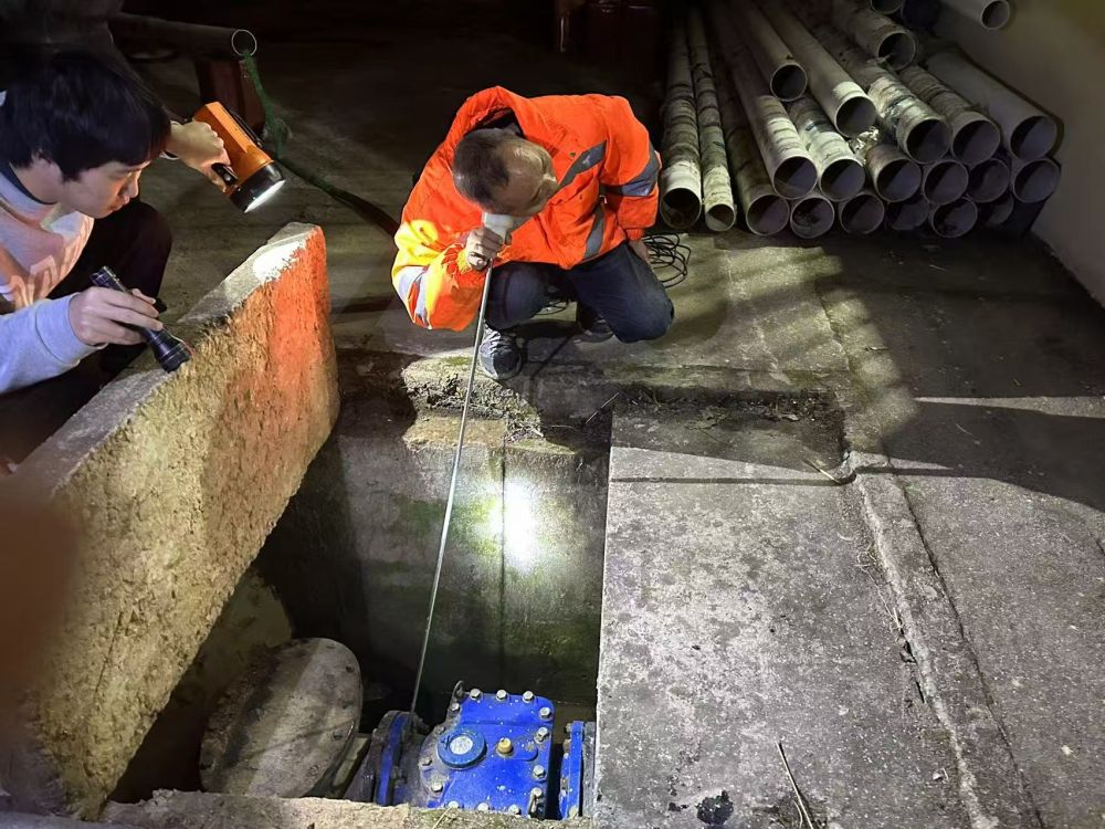 1月14日凌晨,护水工出发寻声。一根听音杆,一头覆在耳上,一头插在泥土里或者贴在水泥地上,草丛、沟坎、井下……每走一两步就要停下来听一听。接近疑似漏水点附近要一边慢慢走一边仔细听,直到确定漏水点,整个过程需要弯腰行走几公里。