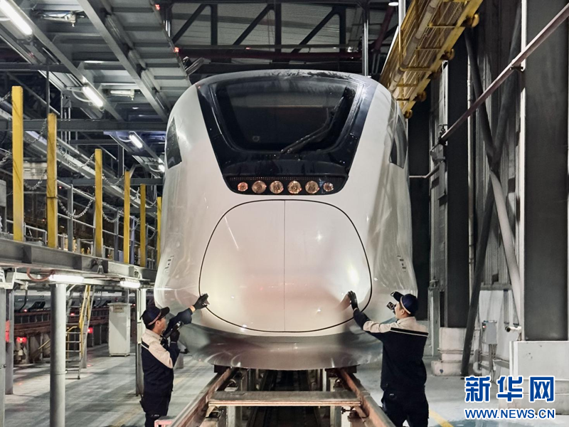 新华网广州1月14日电(王佳 李俊豪)14日为2025年春运首日,当天零时,夜色弥漫,在中国铁路广州局集团有限公司广州动车段广州东动车运用所里,一群动车“医生”们对列车进行检修、维护、保养,多方位排障,确保春运期间列车运行安全。