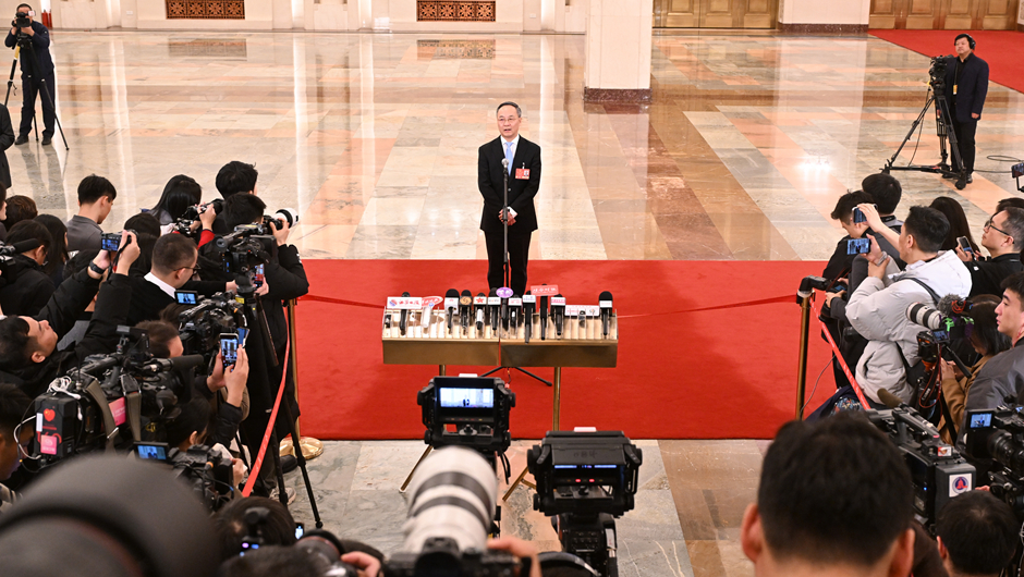 3月5日,第十四届全国人民代表大会第三次会议首场“部长通道”集中采访活动在北京人民大会堂举行。这是国家金融监督管理总局局长李云泽接受媒体采访。