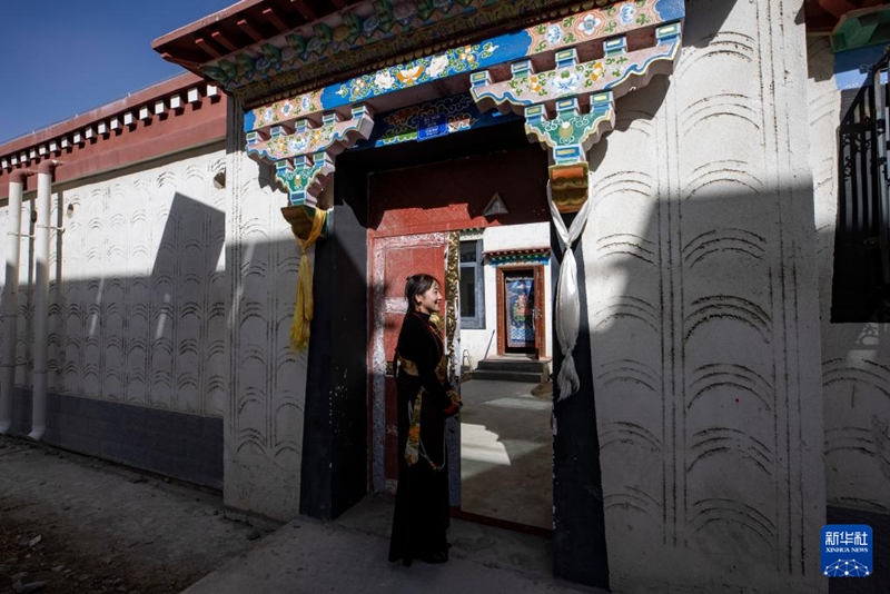 丹增在森布日生态搬迁安置点的新家门前(1月24日摄)。