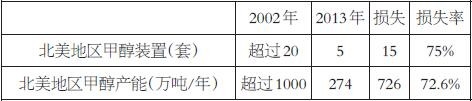 第二阶段是本世纪初,因美国禁止在汽油中掺混MTBE造成的国际甲醇市场大调整期。2003年4月,美国通过了禁止在汽油中掺混MTBE,并大力发展乙醇汽油的法案。作为甲醇的重要下游,MTBE在全世界广泛使用,用于提高汽油的辛烷值,而世界上最大汽油市场的禁用,直接将美国的MTBE产业击垮,并引发了北美地区甲醇产业的大衰退。据不完全统计,在2002年,美国甲醇产能超过1000万吨/年,禁用之后,美国甲醇产业迅速萎缩,截至2013年,剩下了不足300万吨/年。
