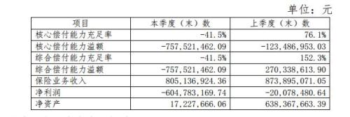 2018年11月,长安责任保险延迟近两周披露第三季度偿付能力报告。该公司核心偿付能力充足率由二季度的76.1%下降至-41.5%,而综合偿付能力充足率则由152.3%下降至-41.5%,远远低于监管要求。