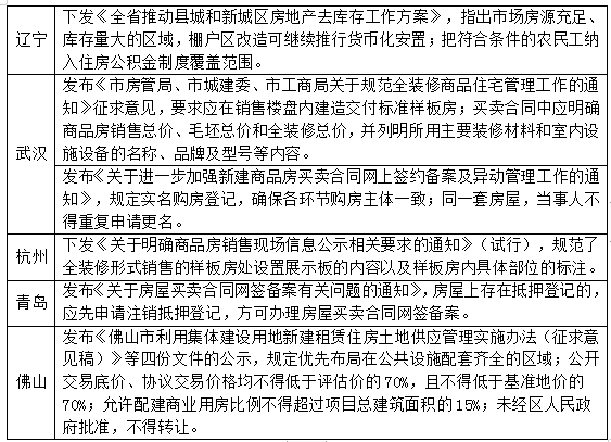 近期地方调控政策一览