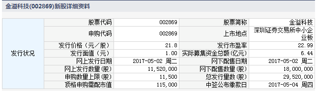金溢科技5月2日发行 申购上限1.15万股