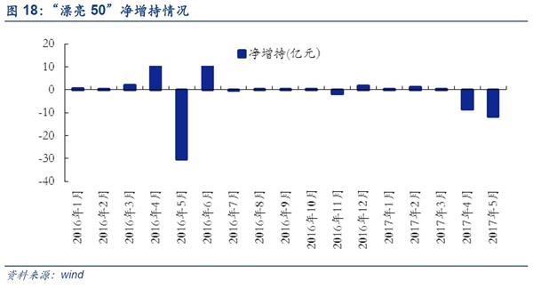(2)5月净增持金额前三的二级行业为房地产开发Ⅱ(17.36亿元)、金属制品Ⅱ(14.52亿元)、中药Ⅱ(10.74亿元);后三的二级行业为运输设备Ⅱ(-6.07亿元)、白色家电(-11.21亿元)、计算机设备Ⅱ(-12.79亿元).