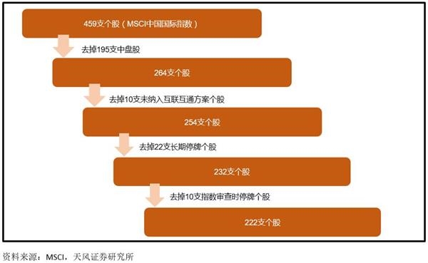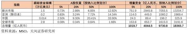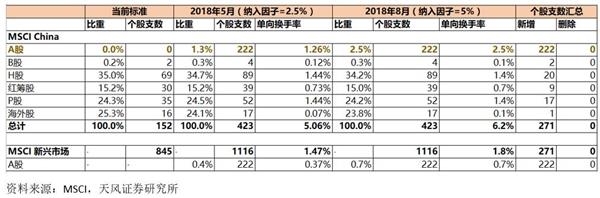 由于许多机构投资者还建议MSCI考虑纳入在内地和香港两地上市的公司所对应的大盘 A股(其H股是当前 MSCI中国指数的成分股),因此在纳入股票个数提升到222只,同时以5%的初始纳入权重计算,A 股占MSCI新兴市场指数的权重也提升到0.73%,此前提案为0.5%。