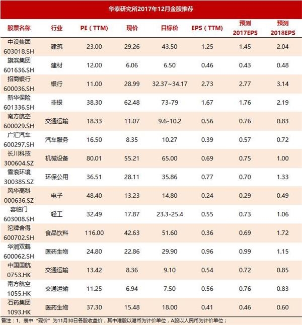 第三、中央经济工作会议召开。每年12月份是对第二年工作定调布局的关键,中央会在上旬召开中央经济工作会议,初步制定财政赤字、货币政策方向、GDP预期等指标,对明年重点工作也会相应进行部署。我们认为,对当前经济形势的判断可能是稳中向好,明年维持政策持续性和稳健性,同时重点布局环保、强国、科技、扶贫等重点工作。迎接改革开放40周年成为重要主题。