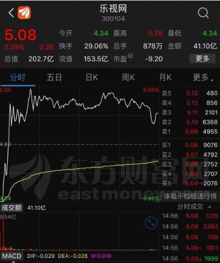 此前连续11个跌停的乐视网周四打开跌停,成交额达到41亿元。全天振幅19.50%,换手率29.06%,最终收盘价为5.08元,上涨5.39%。