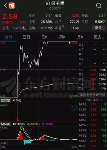 而创造A股最长连续跌停纪录的ST保千里索性也开板了,截止收盘,公司股价报2.58元,上涨4.88%。