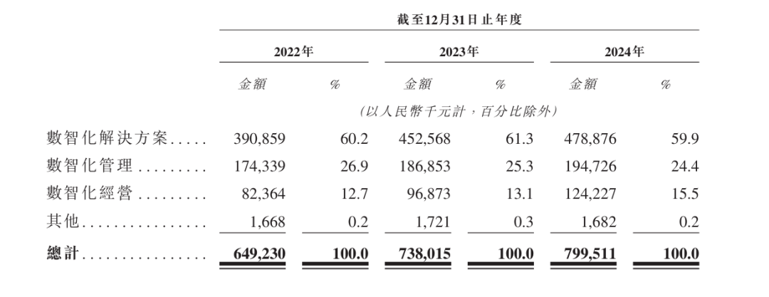 上市申请材料显示,科拓股份业务分为三大类,一是数智化解决方案,指为客户提供集智能硬件、云端软件系统与用户端应用为一体的数智化解决方案,全面覆盖多样化停车场景的停车场端到端数智化。2022年、2023年及2024年,该板块分别实现营收3.91亿元、4.53亿元、4.79亿元。二是数智化管理服务,指围绕无人化值守、智能化决策、集约化运维,为停车场资产方及运营商提供高效的数智化管理服务。2022年、2023年及2024年,该板块分别实现营收1.74亿元、1.87亿元、1.95亿元。三是数智化经营,指为停车场资产方实现精准、智能及全生命周期的数智化经营,协助客户与自身实现闲置资源变现,并开拓额外收益来源。2022年、2023年及2024年,该板块分别实现营收8236.4万元、9687.3万元、1.24亿元。