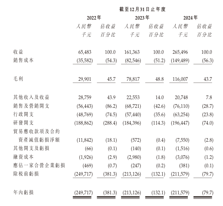 2022年、2023年及2024年,公司来自最大客户的收益分别约为0.16亿元、0.61亿元及0.49亿元,分别占当年总收益的24.1%、38.0%及18.5%。
