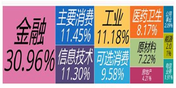 图为新华500指数(989001)各行业所占权重