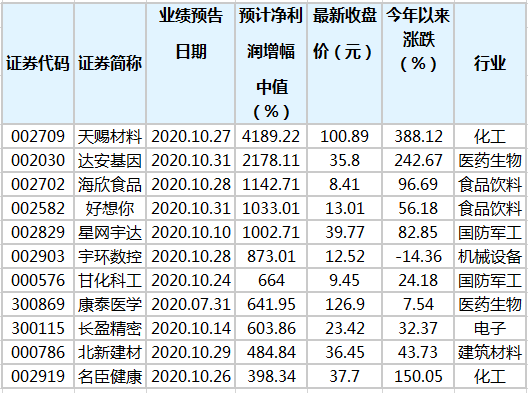 分行业看,业绩增幅预计翻倍股主要集中在化工、医药生物、电子等行业。