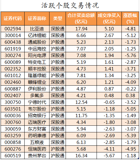 活跃个股方面,北向资金净买入较多的有比亚迪、亿纬锂能、通威股份、中远海控、阳光电源,净买入金额分别为5.1亿元、2.67亿元、2.13亿元、2.05亿元、1.94亿元。北向资金净卖出较多的有贵州茅台、恒瑞医药、五粮液、药明康德、东方财富,净卖出金额分别为5.67亿元、4.11亿元、2.85亿元、2.69亿元、2.63亿元。