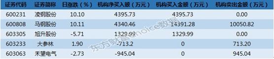 其中机构主要参与的是马钢股份,共买入14391.28万元,共卖出10050.82万元,净买入为4340.46万元。