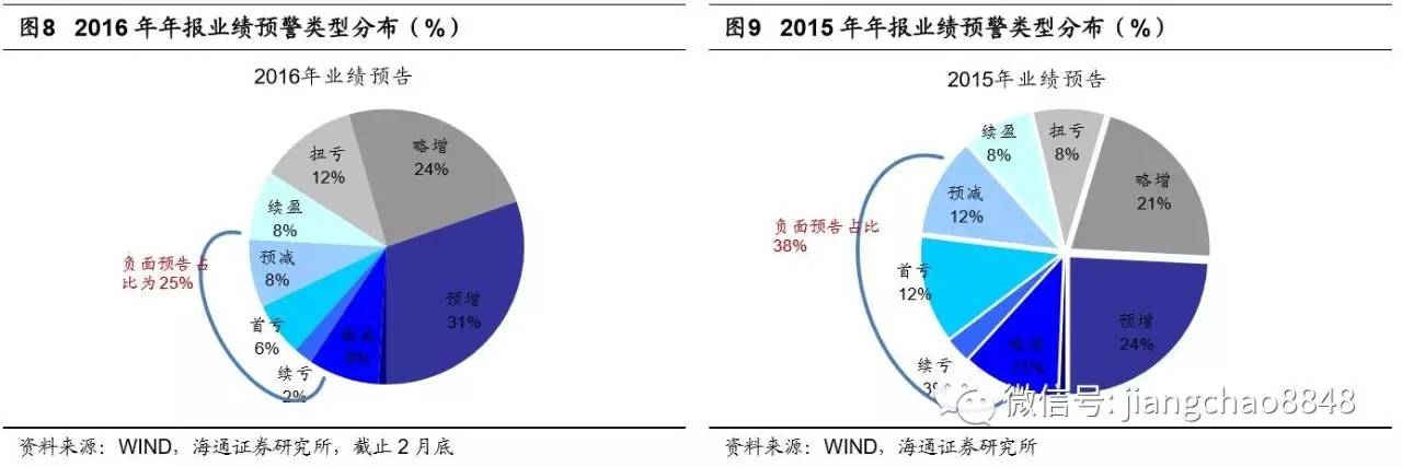 过剩产能行业盈利修复。分行业来看,过剩产能行业盈利改善最为明显。采掘行业上市公司预告中有67%是正面预告,而15年年报只有20%;钢铁行业盈利修复更佳明显,有超过一半的上市公司扭亏为盈,正面预告的比例从20%大幅增加到81%;建材行业正面预告的比例从47%增加到74%,有色也从39%增加到82%。此外,地产行业上市公司正面预告比例从47%增加至72%。