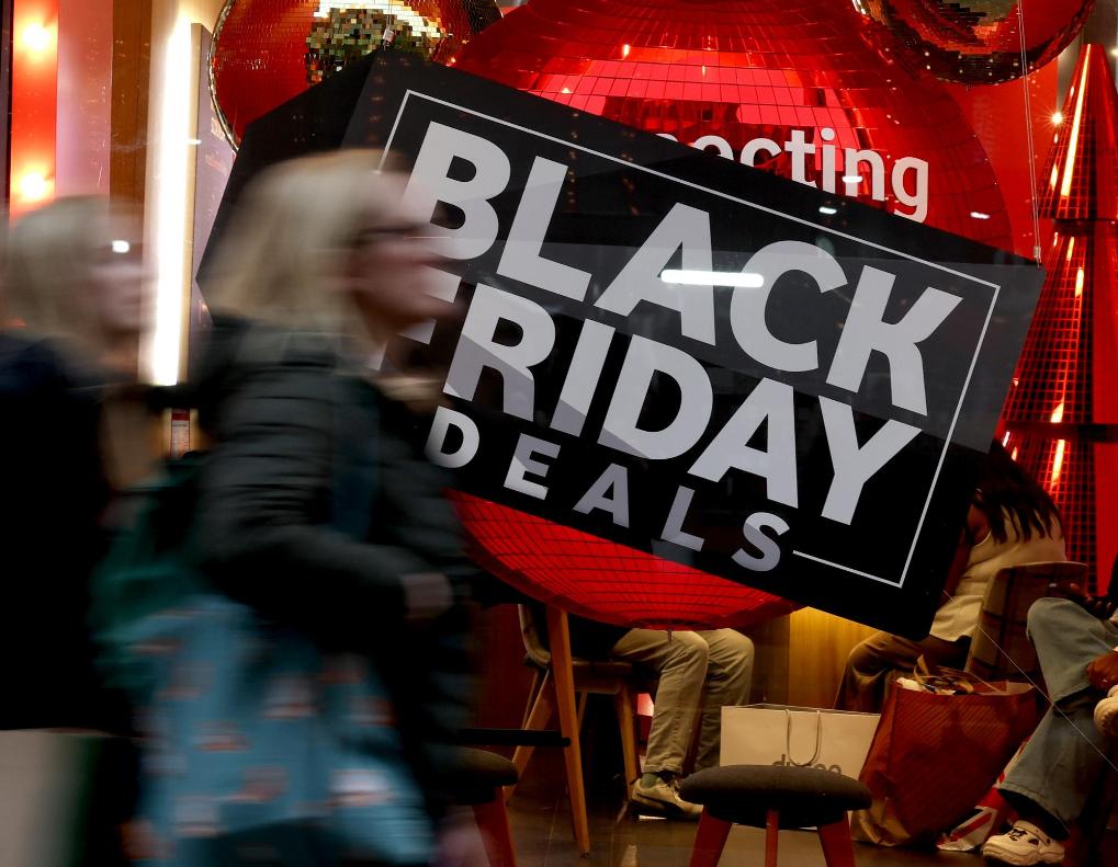 11月28日,人们在英国伦敦牛津街购物。当日,多国迎来“黑色星期五”购物促销日,商家纷纷开展促销活动。新华社记者李颖摄