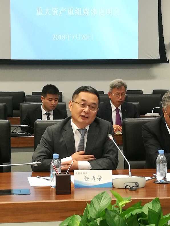 江苏奥赛康药业董事、副总经理、董事会秘书任为荣回答中国证券报记者提问 王兴亮 摄