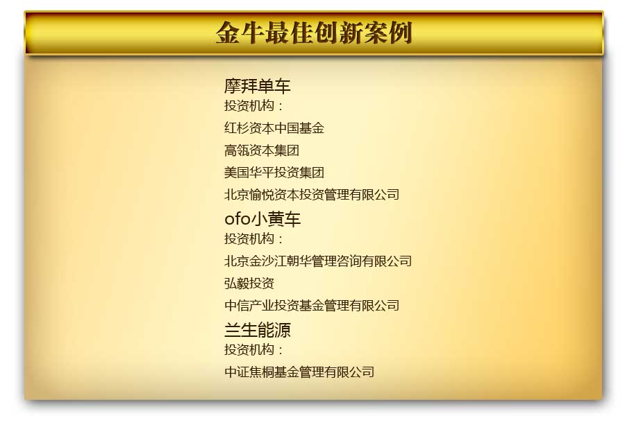 金牛最佳退出案例 金牛最佳创新案例