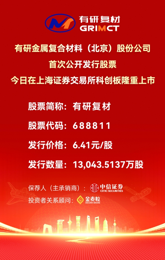 有研金属复合材料(北京)股份公司首次公开发行股票今日在上海证券交易所科创板隆重上市