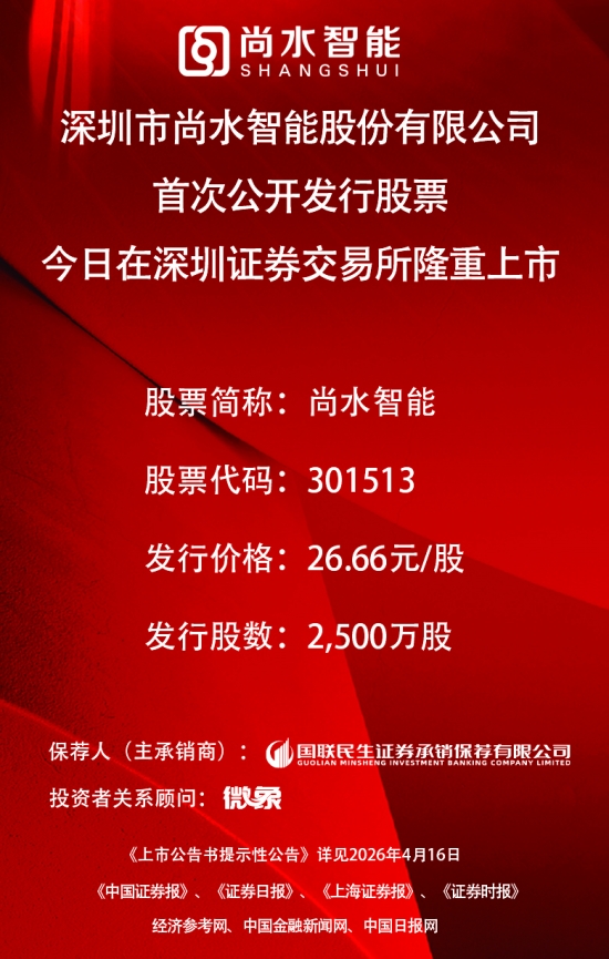 深圳市尚水智能股份有限公司首次公开发行股票今日在深圳证券交易所隆重上市