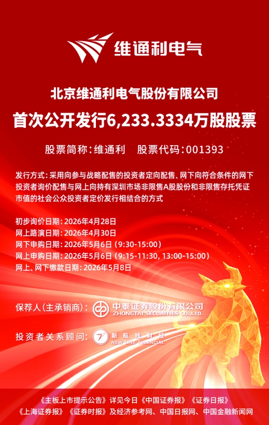 北京维通利电气股份有限公司首次公开发行6,233.3334万股股票
