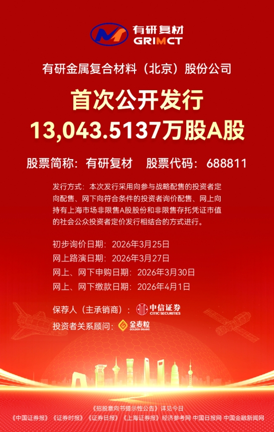 有研金属复合材料(北京)股份公司首次公开发行13,043.5137万股A股