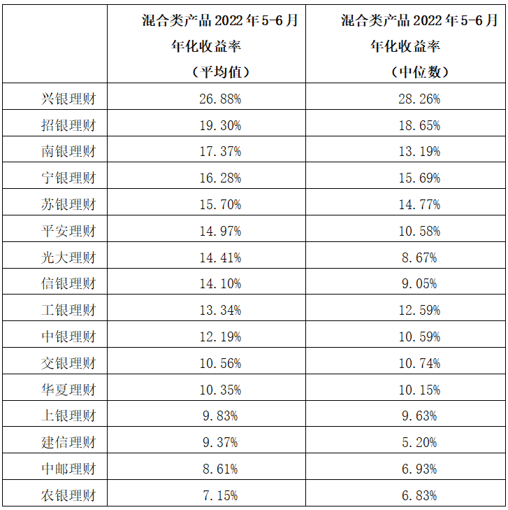 在上半年的市场背景下,上银理财、农银理财、苏银理财和光大理财公募混合类产品在稳定产品净值和实现正收益表现上均位于所有理财子公司领先水平,在争取保障客户本金的基础上,提供了稳健并相对有竞争力的产品收益。