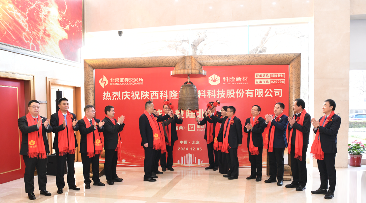 中证网讯(记者 周璐璐)12月5日,由国新证券担任保荐机构及主承销商的陕西科隆新材料科技股份有限公司在北京证券交易所正式上市(股票代码:920098),成为北交所在新“国九条”后第七个成功过会并上市的IPO项目。