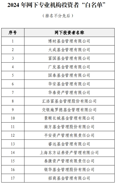 中国证券业协会发布2024年网下专业机构投资者“白名单”