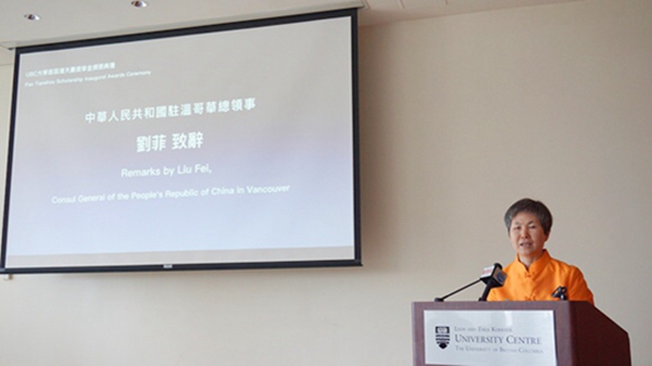 中华人民共和国驻温哥华总领事刘菲在颁奖典礼中致辞