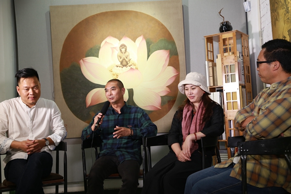 庐灵文化艺术空间负责人周文锋 艺术家李秋实老师 红鼎画廊向方舟女士以及学术主持简斌先生正在现场访谈